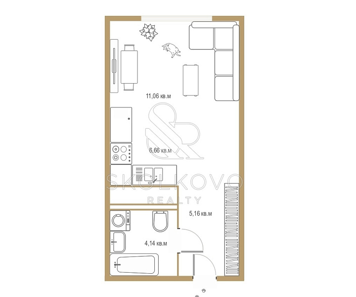 1-а комнатная квартира площадью 27 кв.м.