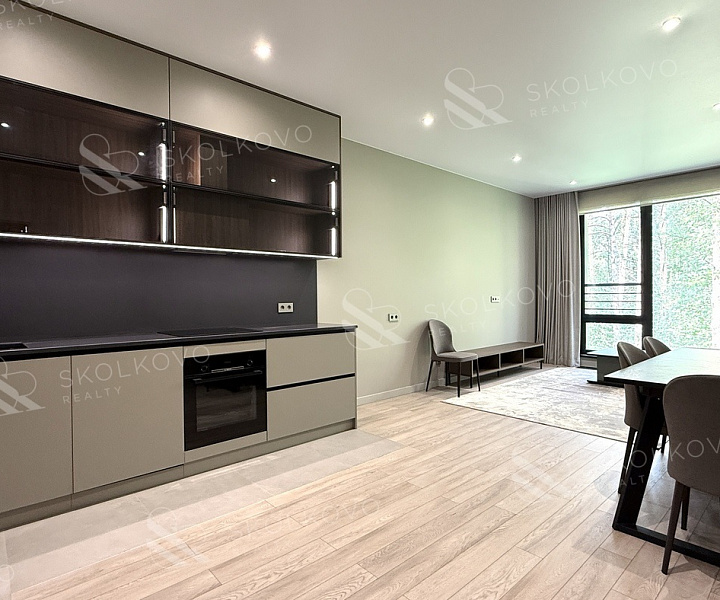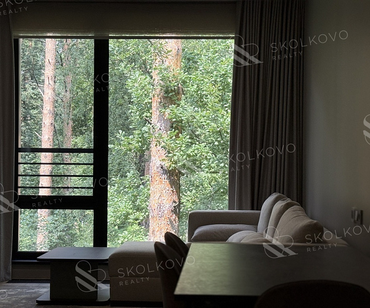 В квартире высокие потолки (3 метра), панорамные окна, интеллектуальные системы очистки воздуха и отделка из натуральных материалов создают атмосферу уюта и благородства.