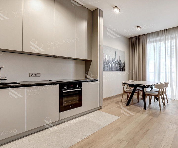 Интерьер квартиры оформлен в современном дизайнерском стиле, с учетом актуальных тенденций и высоких стандартов качества.