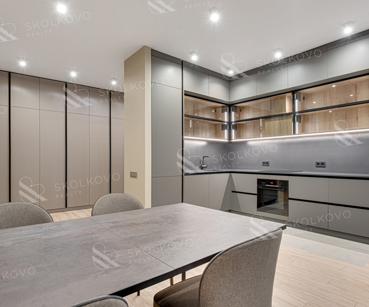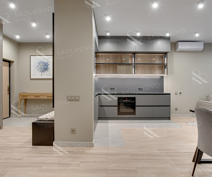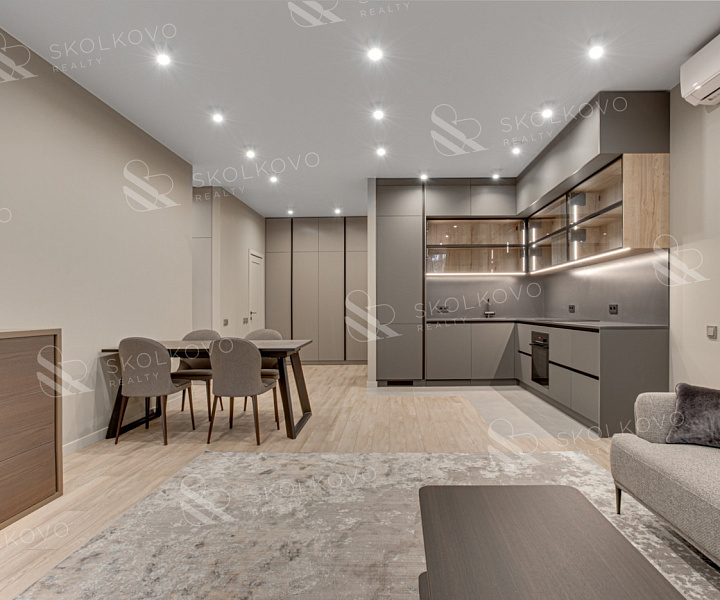 В квартире высокие потолки (3 метра), панорамные окна, интеллектуальные системы очистки воздуха и отделка из натуральных материалов создают атмосферу уюта и благородства.