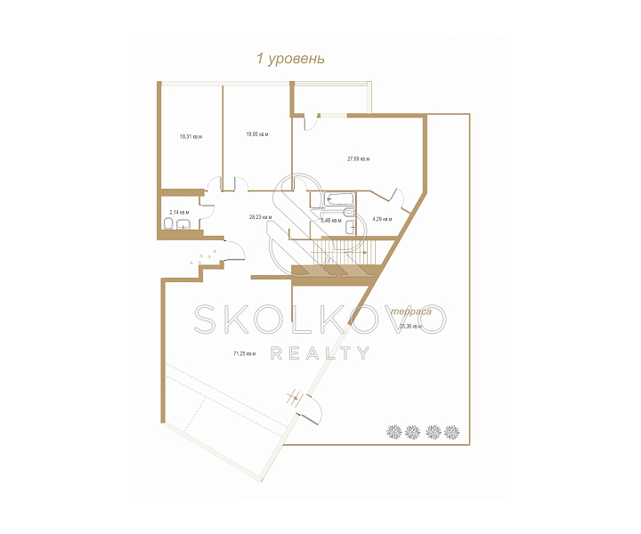 Видовая терраса 25 м²: Простор для отдыха, наслаждения свежим воздухом и прекрасными видами на Москву.