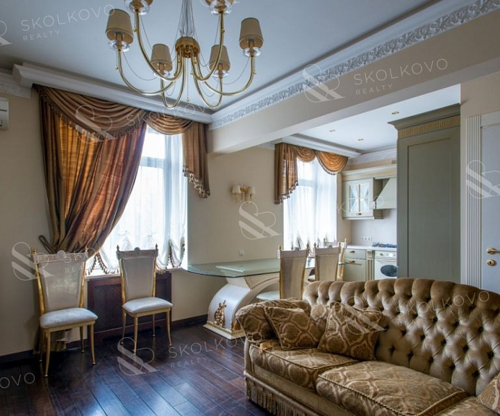 С удовольствием представляем вашему вниманию великолепную 3-комнатную квартиру, расположенную на 5 этаже элегантного сталинского фасадного дома.
