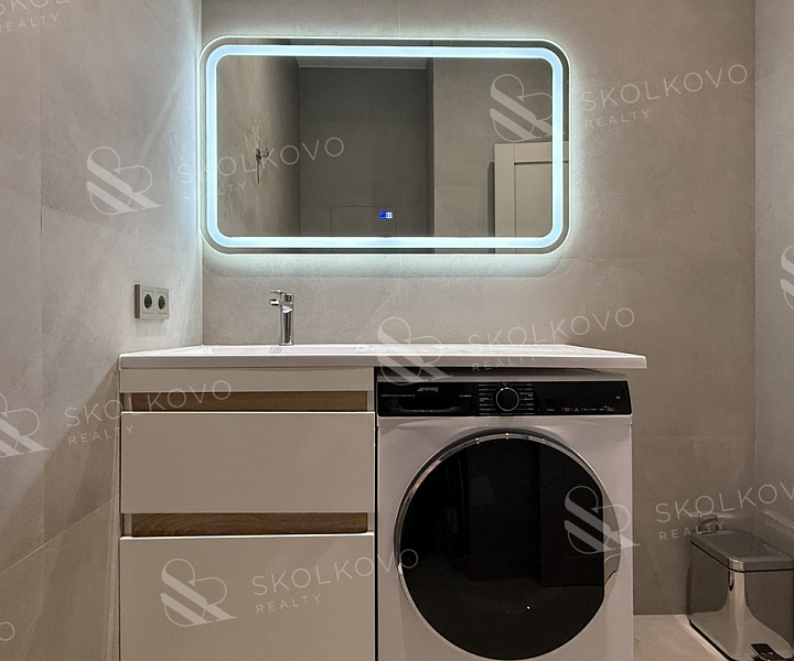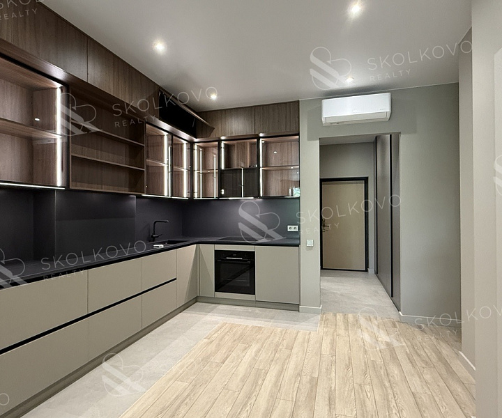 В квартире высокие потолки (3 метра), панорамные окна, интеллектуальные системы очистки воздуха и отделка из натуральных материалов создают атмосферу уюта и благородства.