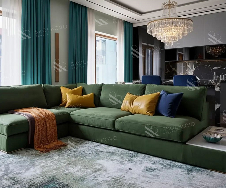 Квартира выполнена в уникальном дизайнерском стиле, который гармонично сочетает функциональность и эстетику.