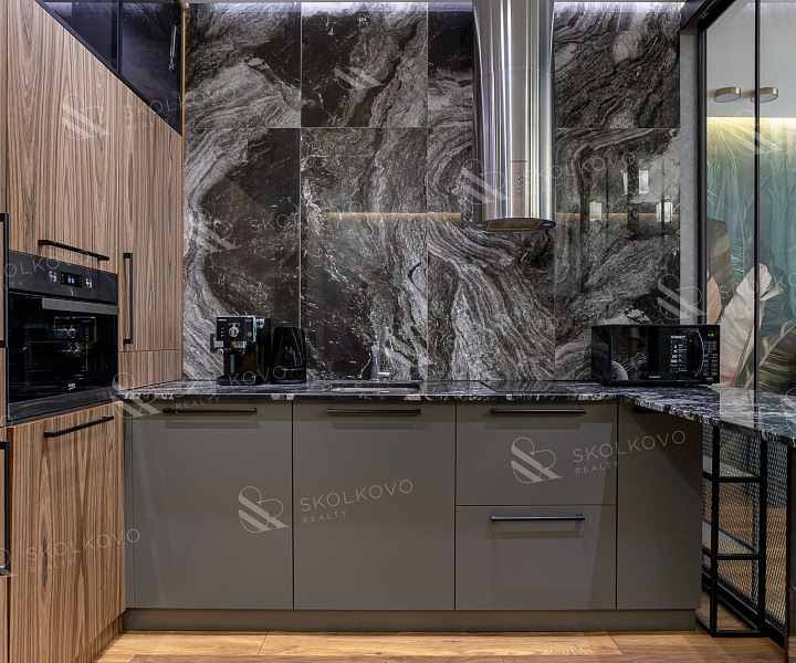 Вся необходимая встроенная и бытовая техника на удобной эргономичной кухне