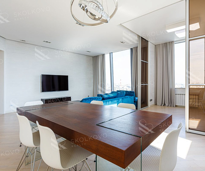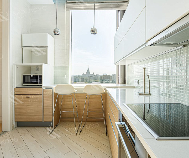 Квартира ориентирована на две стороны света, из окон открываются впечатляющие виды на Москва-реку, Сити, МГУ.