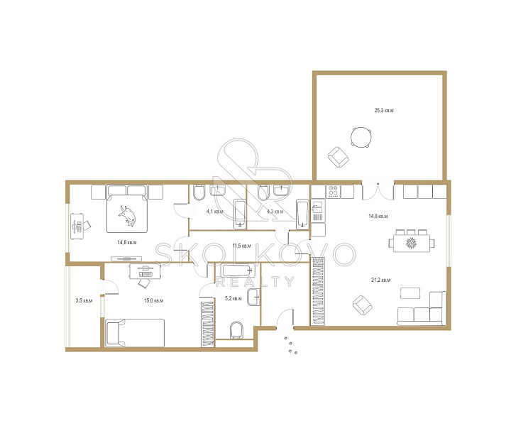 • Выход на открытую террасу из кухни: Идеальное место для утреннего кофе или вечернего отдыха.