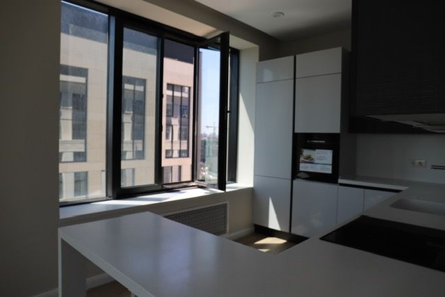 Апартаменты расположена на 11 этаже 12-этажного дома. Из окон открывается вид на улицу и двор.