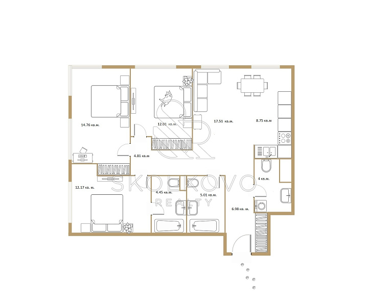 - мастер-спальню со своим сан.узлом и гардеробной,