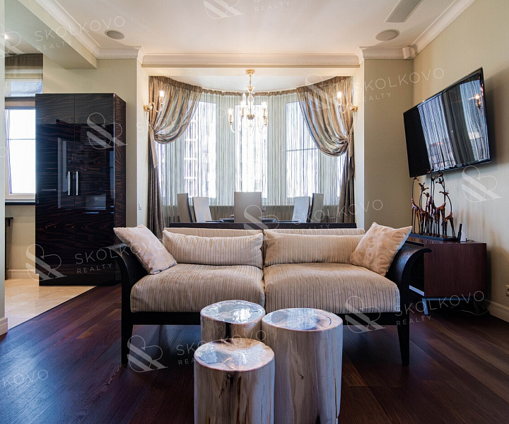 Использовались натуральные дорогостоящие материалы, установлена качественная сантехника Villeroy & Boch, Geberit, бытовая техника Miele, Electrolux, Bosch.