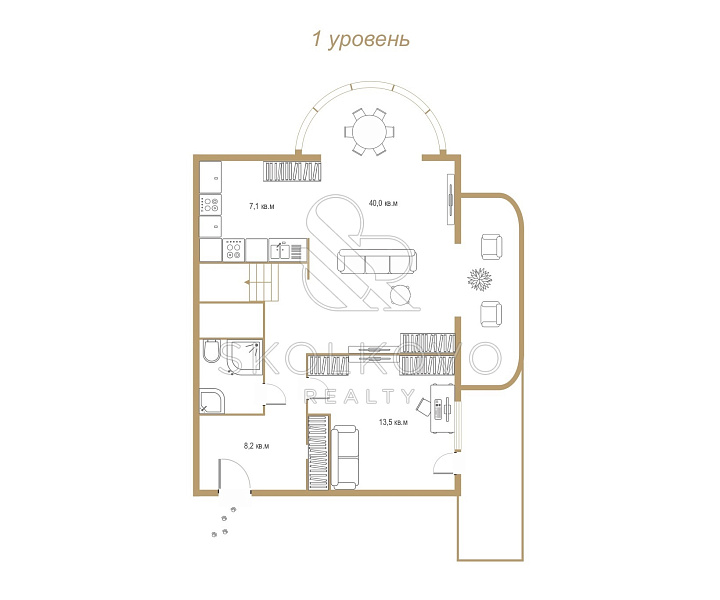 - просторная кухня-гостиная с зоной отдыха с действующим древесным камином сердцем дома создающий особый уют домашнего очага;