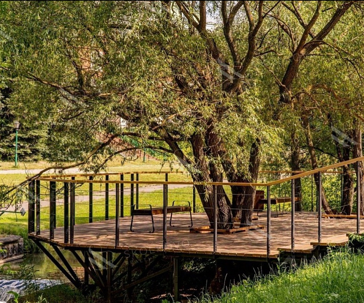 Виды на зелёный парк, реку и Мосфильмовский пруд