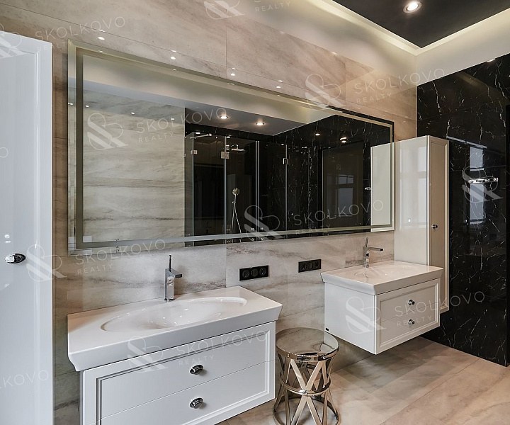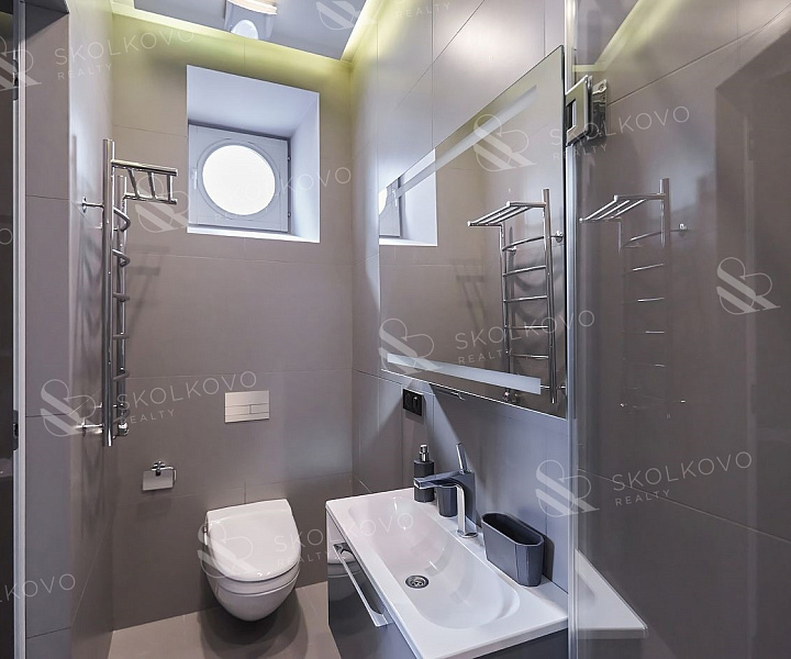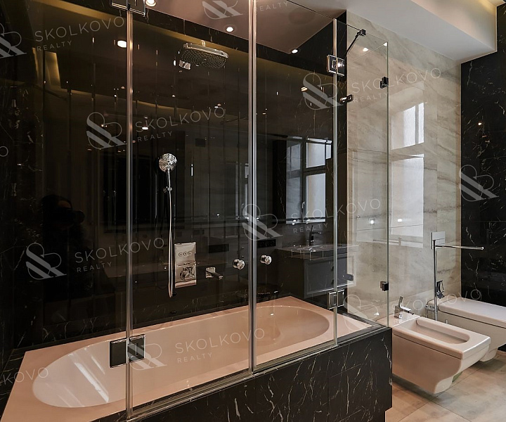 В квартире оборудованы ванная комната с ванной и два санузла с душевыми кабинами.