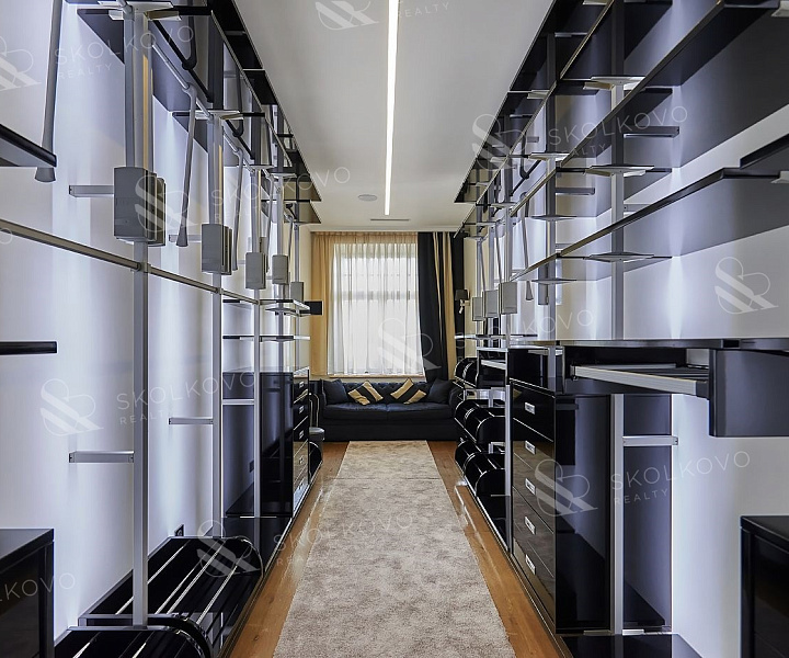 Большая гардеробная комната позволит удобно разместить все вещи.