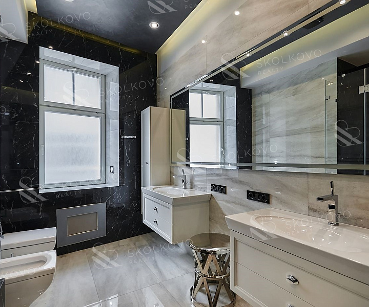 В квартире оборудованы ванная комната с ванной и два санузла с душевыми кабинами.