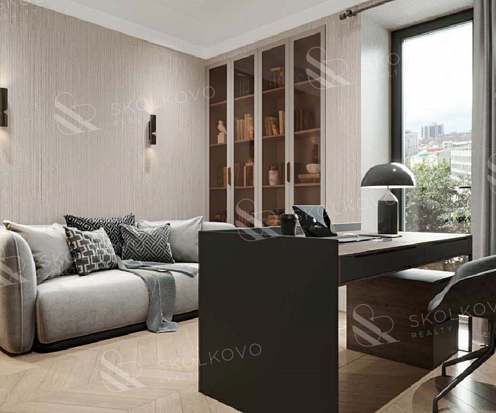 Благодаря угловому панорамному остеклению пространство наполнено естественным светом и теплом, открываются виды на высотку на Кудринской площади.