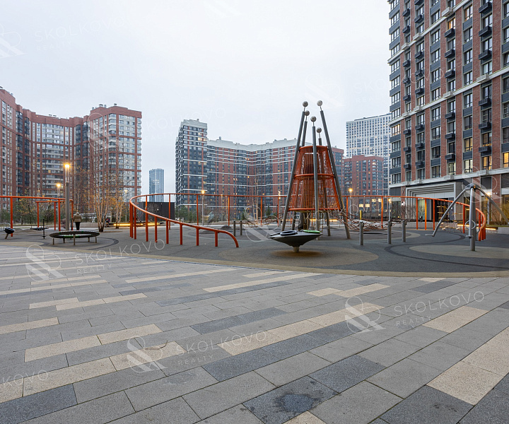 Закрытая территория с безмашинным двором, где расположены детские площадки и зоны для отдыха.