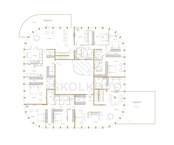 7 мастер-спален, каждая с возможностью создания индивидуального санузла.