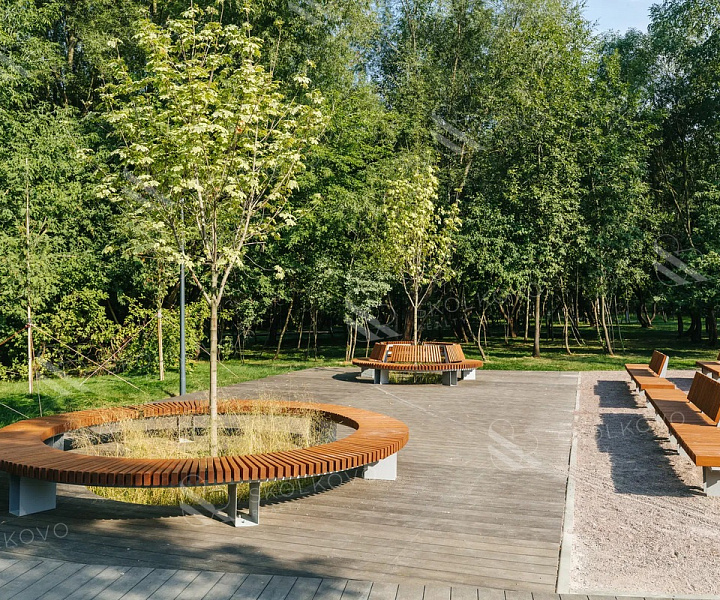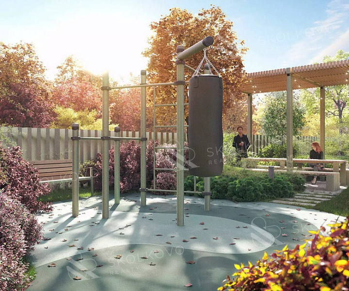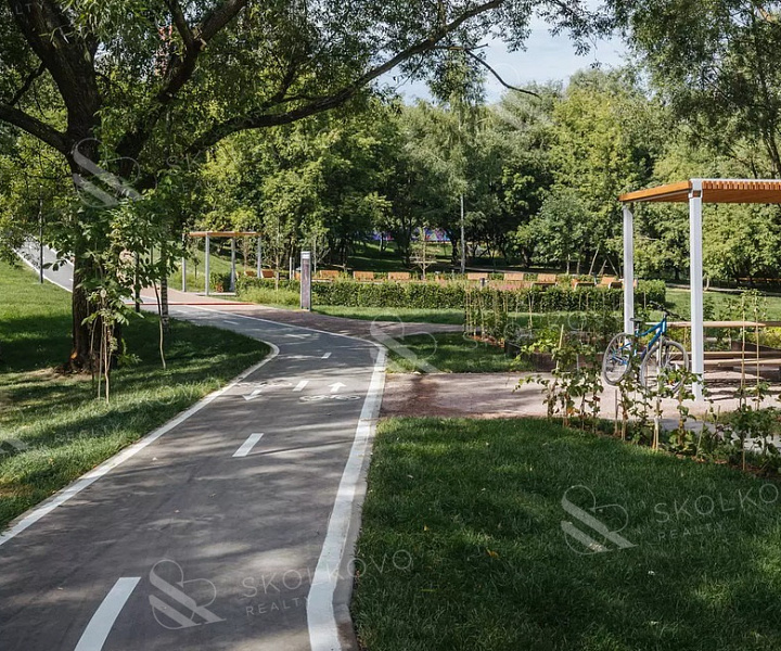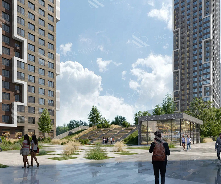 На крыше двухуровневого подземного паркинга расположен зеленый ландшафтный парк с лаунж-зонами, детскими и спортивными площадками.