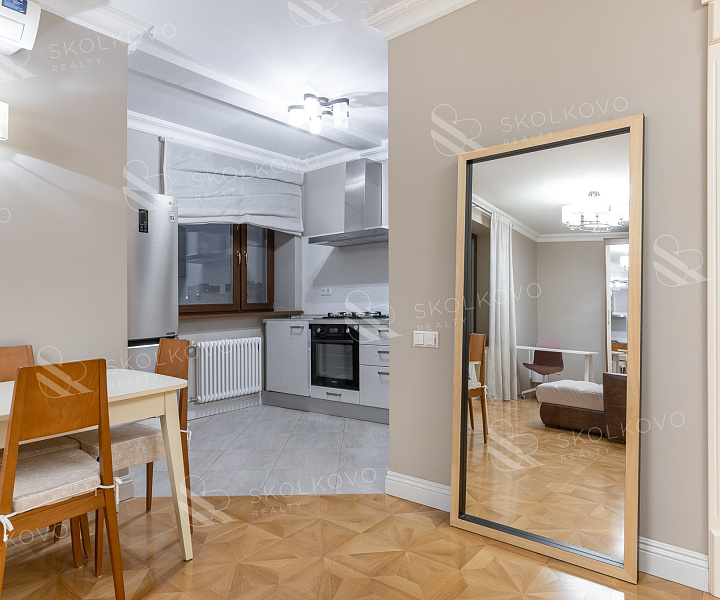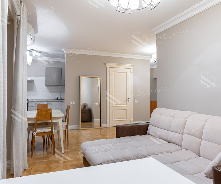 Квартира расположена всего в пяти минутах пешком от станции метро «Арбат», что обеспечит вам удобный доступ ко всем уголкам столицы.