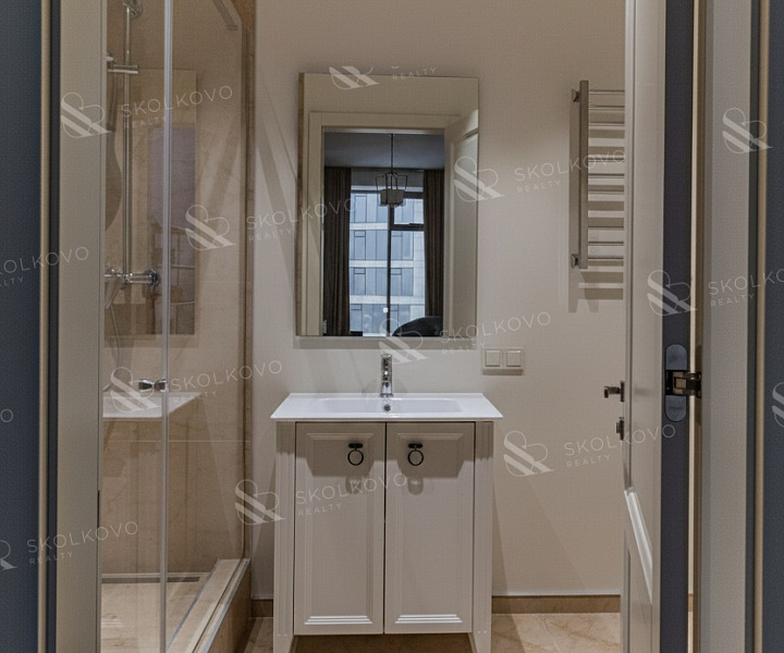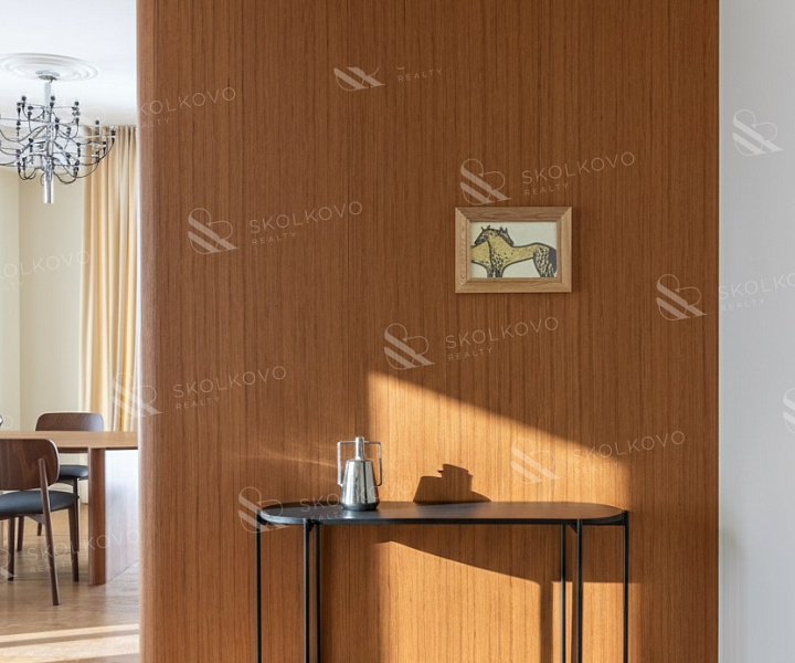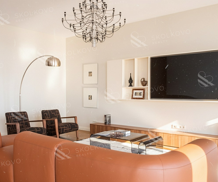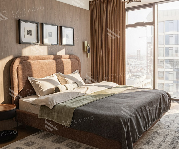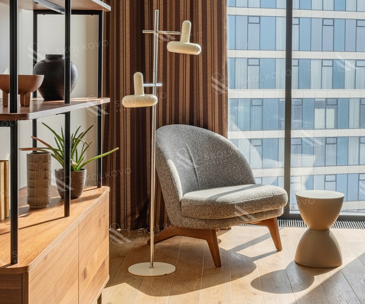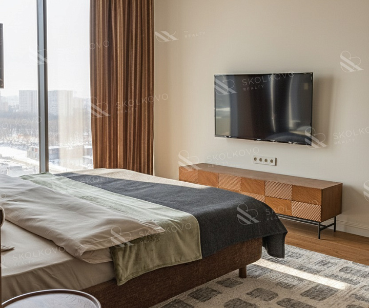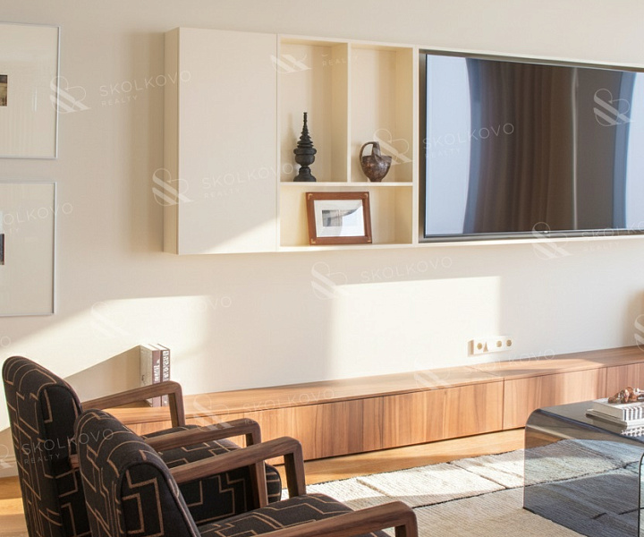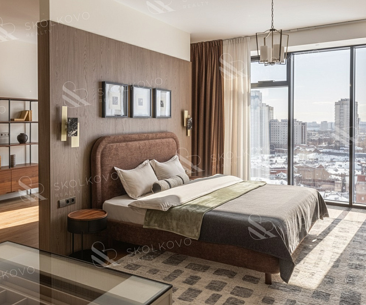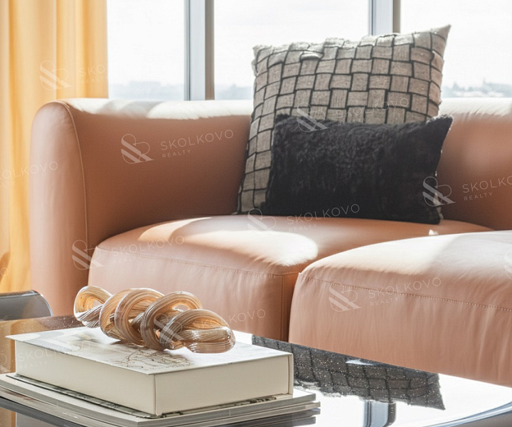 Расположение на высоком этаже открывает великолепные панорамные виды на Москву, наполняя пространство светом благодаря большому количеству окон.