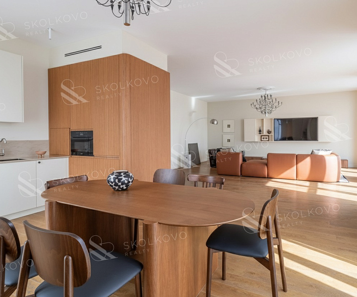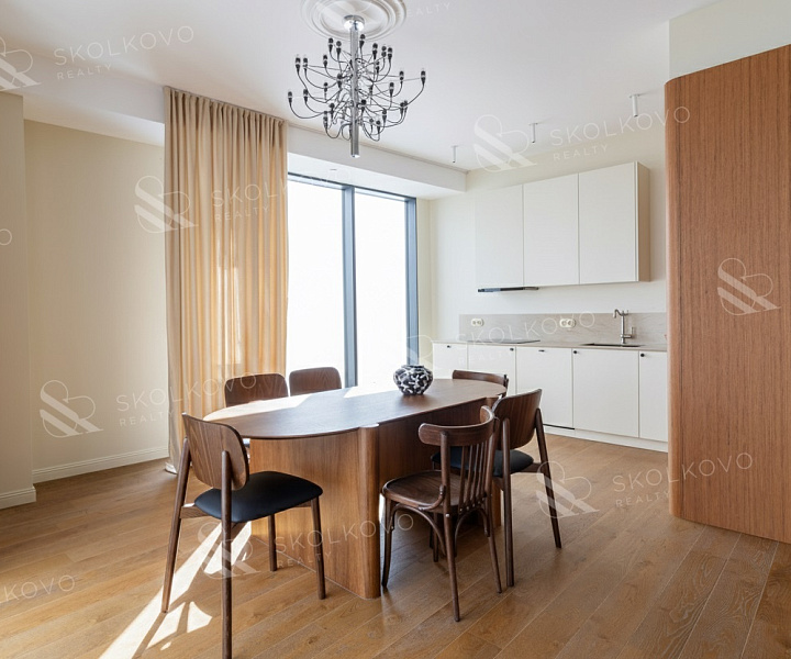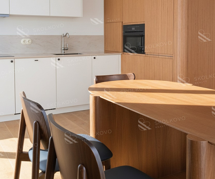 Квартира выполнена в современном стиле и имеет новый ремонт, который создает атмосферу теплоты и уюта. Просторная кухня-гостиная площадью 60 м² становится центром домашней жизни, прекрасно подойдут для семейных собраний и встреч с друзьями.