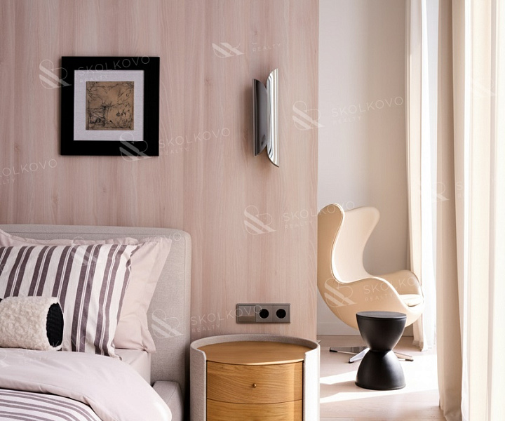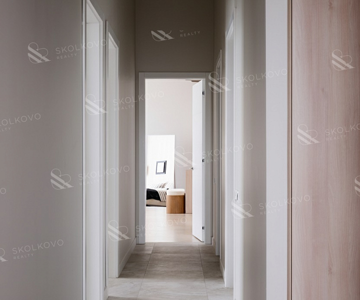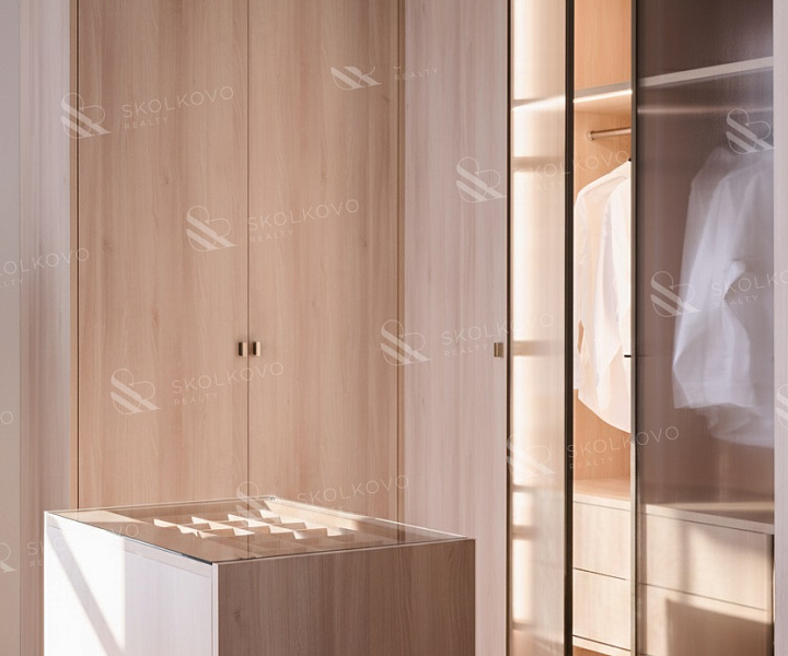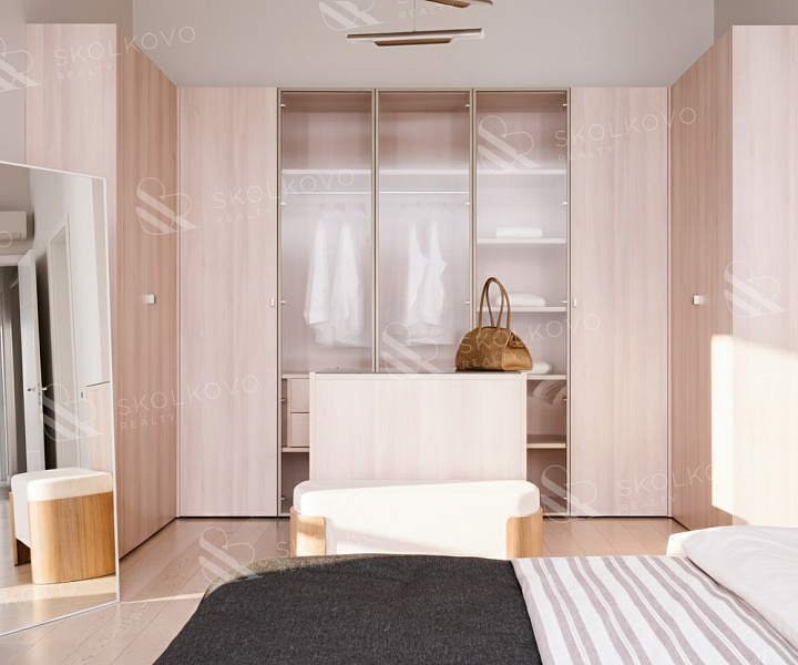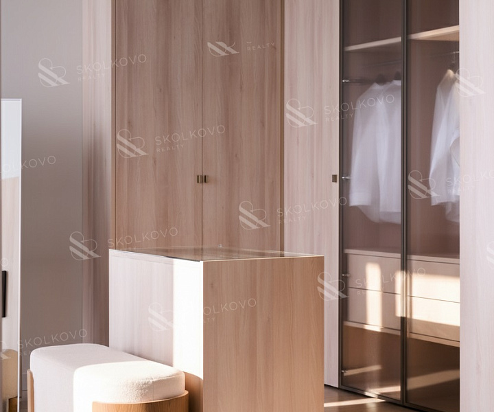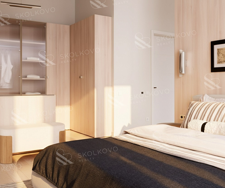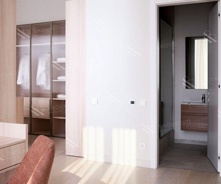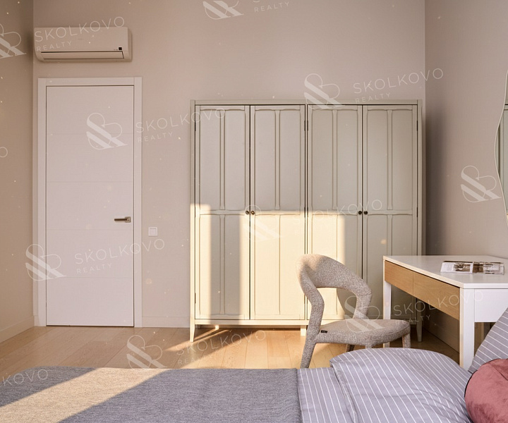 Мастер-спальня (48.5 м2) оборудована собственным санузлом и гардеробной.