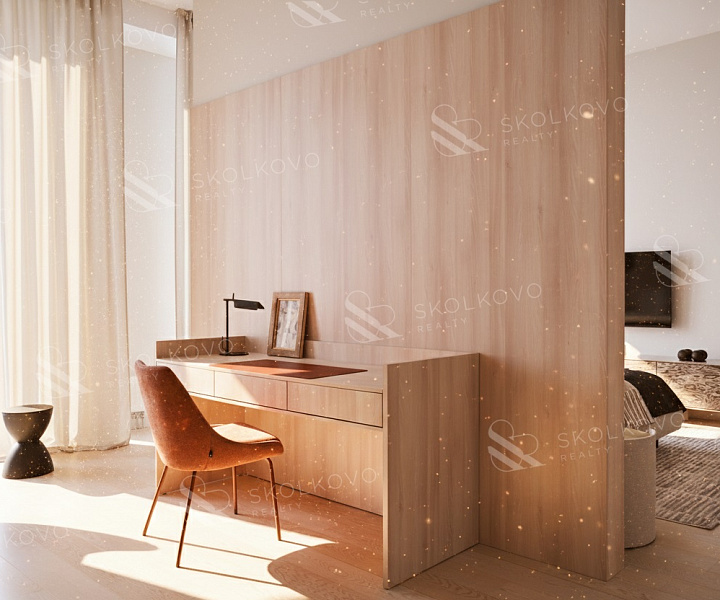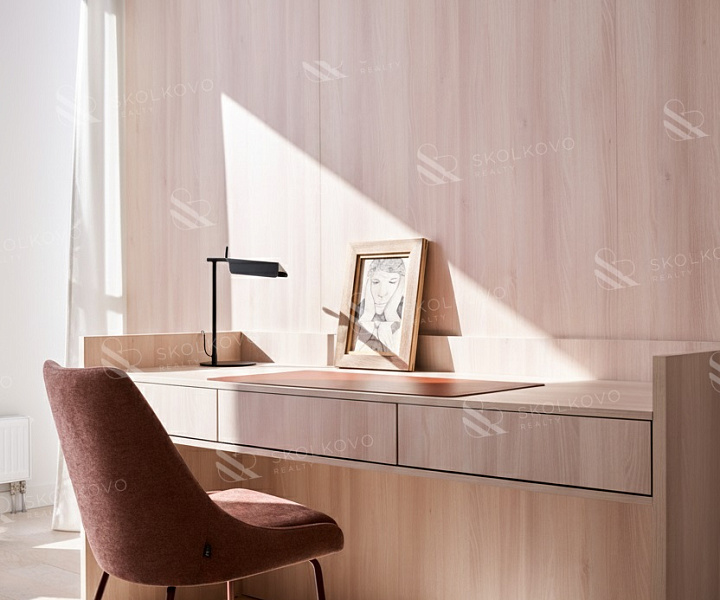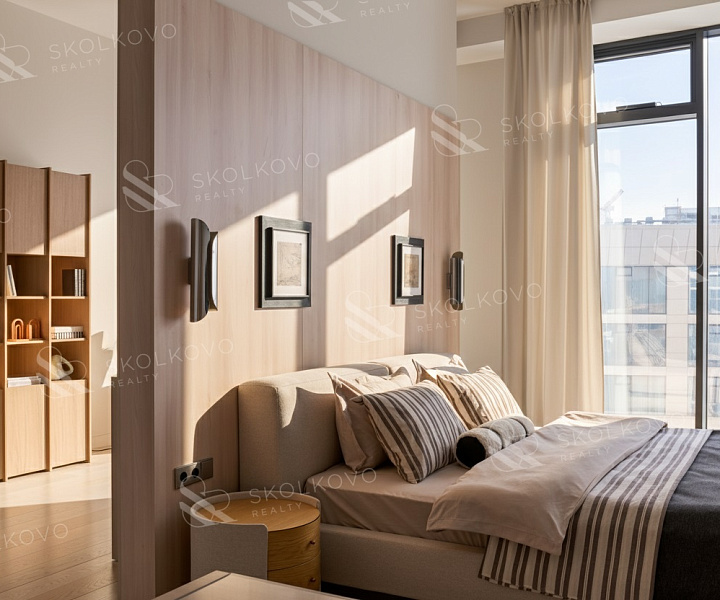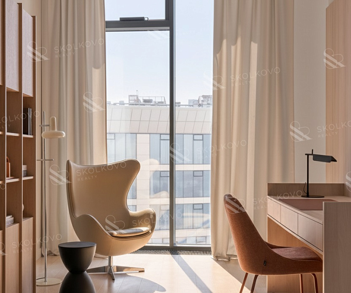 Высота потолков достигает 3,4 метра, что добавляет дополнительное ощущение пространства.