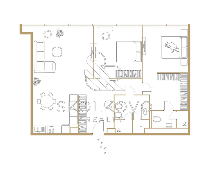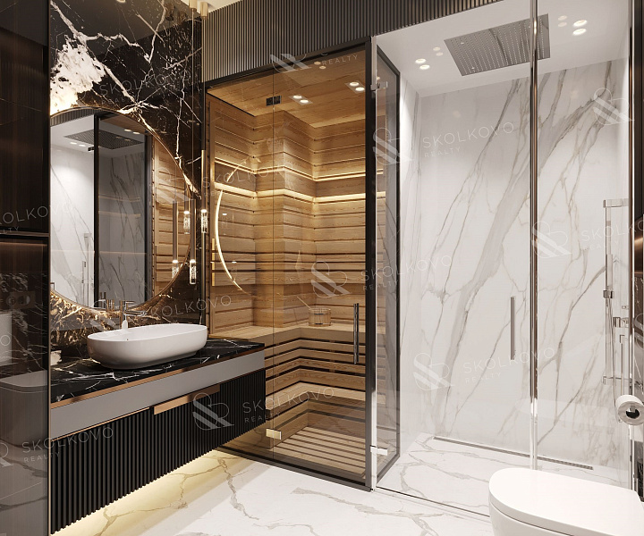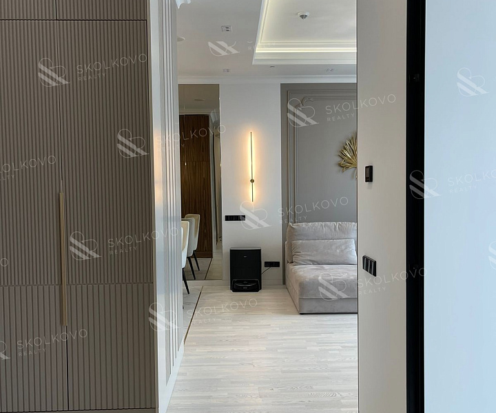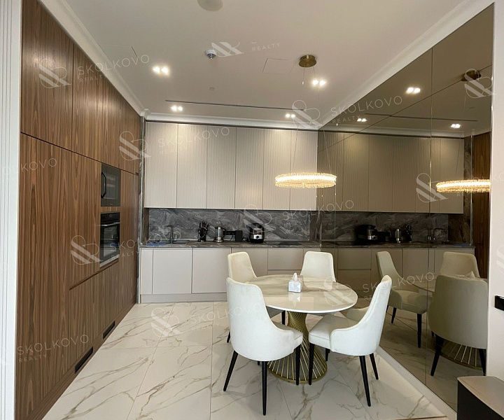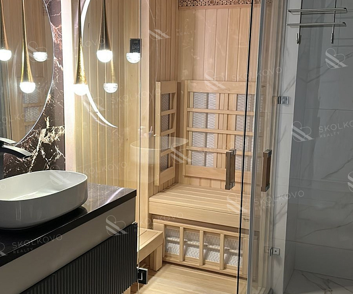 Просторная кухня-гостиная с обеденной зоной подарит вам уют и комфорт для проведения семейных вечеров, а две уютные спальни, каждая с гардеробной, обеспечат личное пространство для каждого члена семьи. Апартаменты имеют два современных санузла, один из которых оборудован сауной для вашего расслабляющего отдыха.