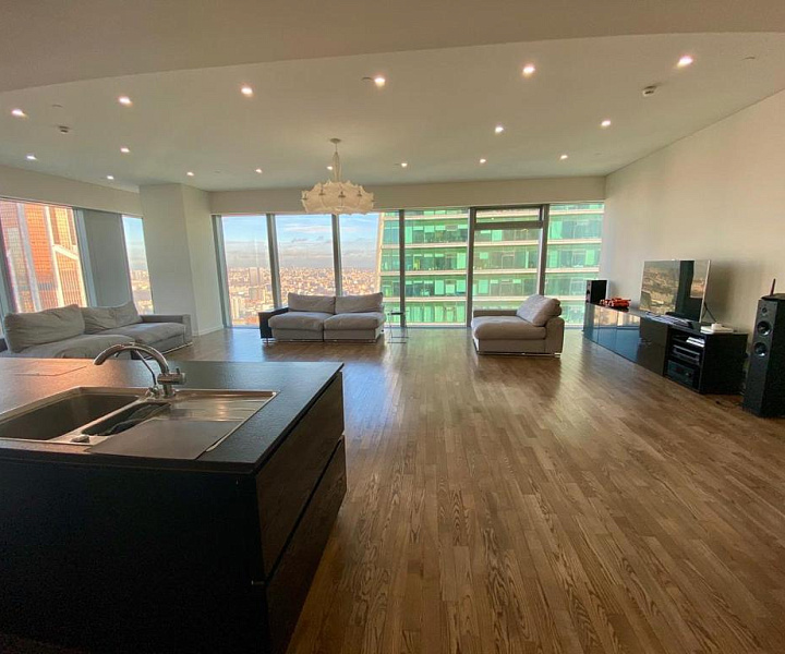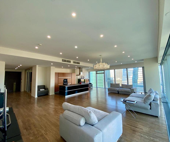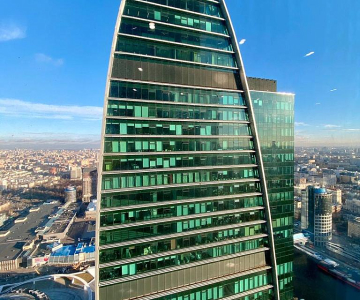 Офис расположен на 49 этаже 76-этажного небоскреба. Из окон открывается шикарный вид на набережную Москвы-реки.