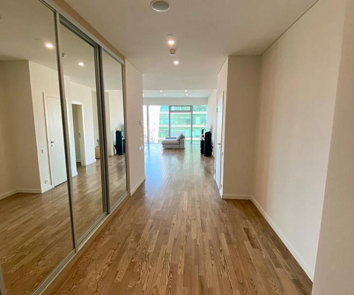 Планировка: кухня, объединенная с гостиной, 2 спальных комнаты с санузлами, две гардеробные, гостевой санузел. Окна выходят на две стороны света. Эта планировка считается лучшей в комплексе.