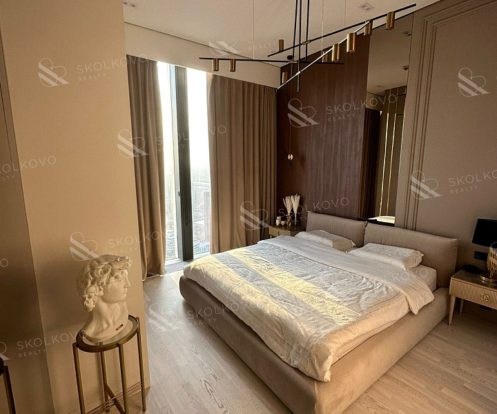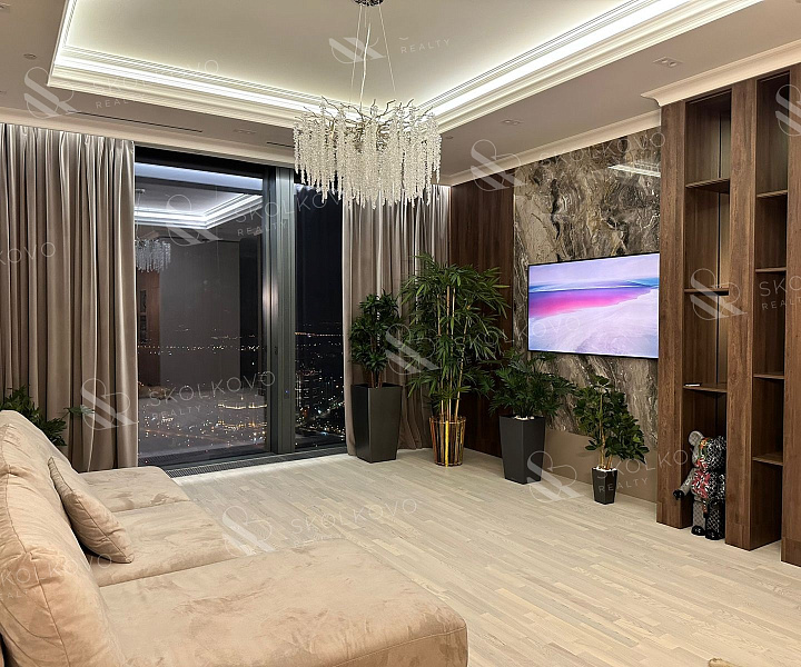 Апартаменты располагаются на 53 этаже 77-этажного дома. Окна выходят на запад Москвы- на поклонную гору и филевский парк.
