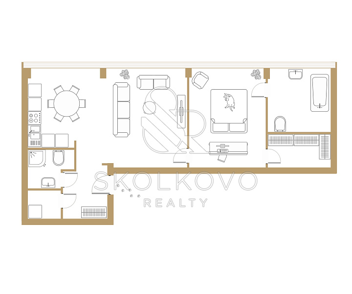 Внутреннее оформление выполнено с учетом всех актуальных тенденций, а использование премиальной мебели и техники создает атмосферу роскоши и уюта.