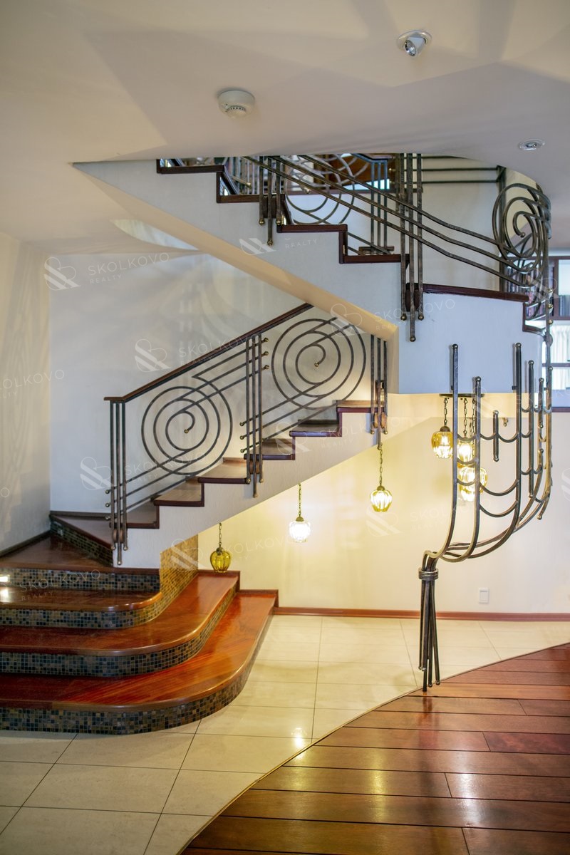 Цокольный этаж: кинотеатр, винная комната, библиотека, спа-зона с сауной, санузел, лифт, котельная.