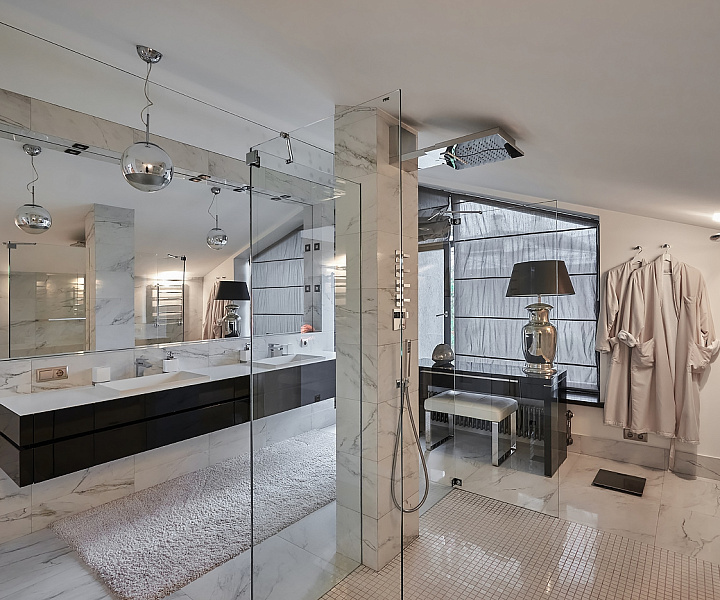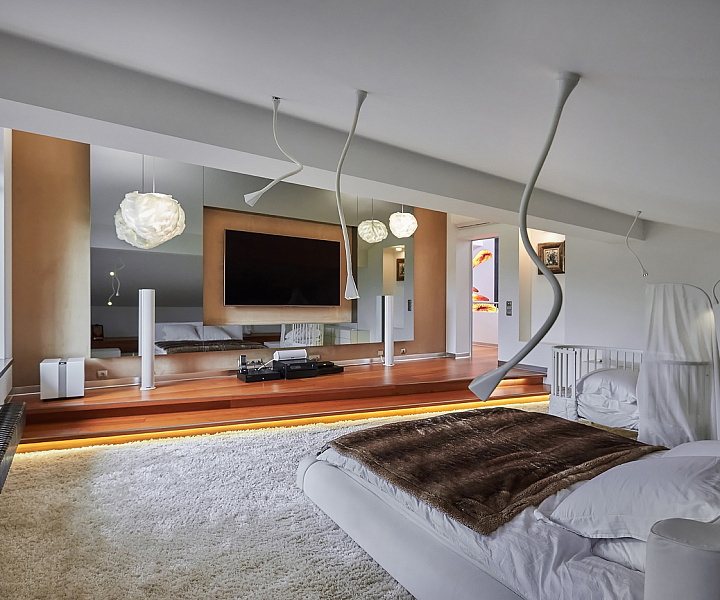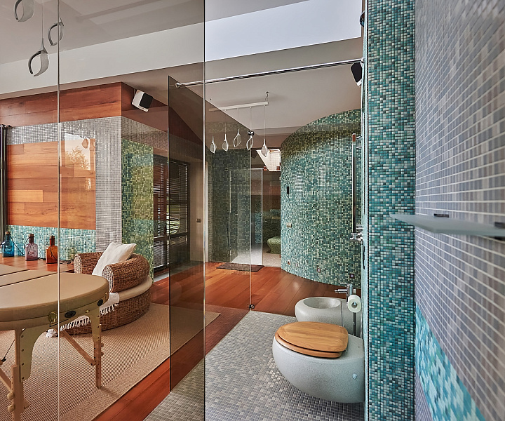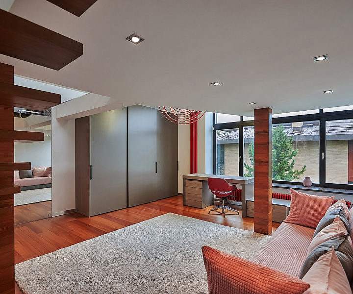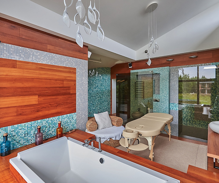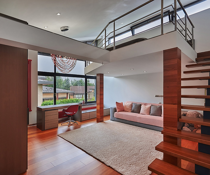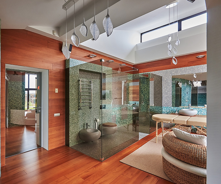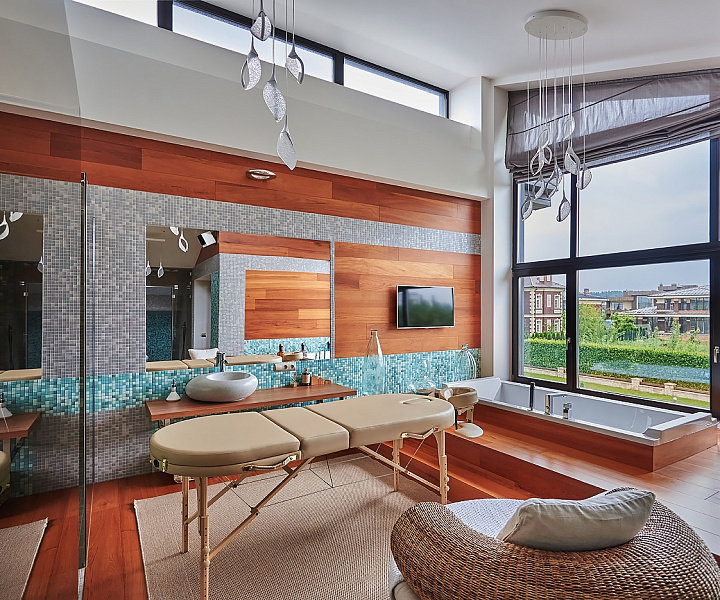 На втором этаже: мастер-спальня с гардеробной и ванной комнатой, детская спальня в двух уровнях с ванной и гардеробной, зона СПА.