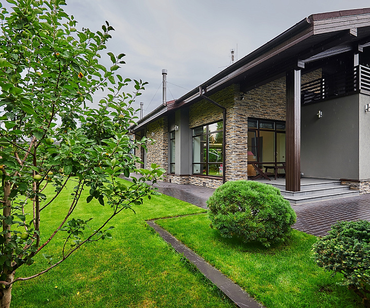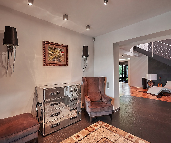 Авторский дизайн от известного архитектурного бюро. Тщательно продуманная планировка и исключительное качество материалов отделки, мебели и бытовой техники! В доме высокие потолки, панорамные окна в пол с видом на участок. Современная удобная планировка, просторные и светлые спальни.