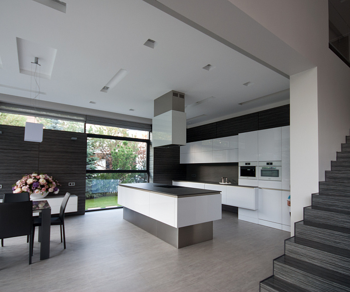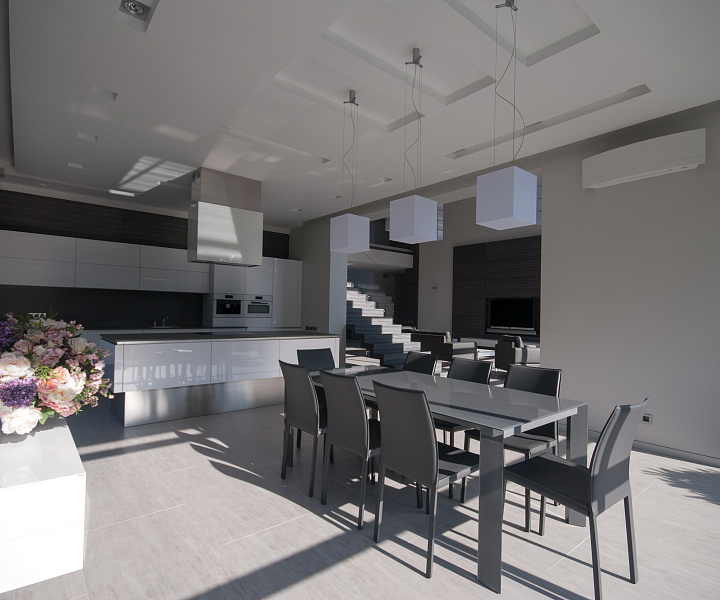 1 этаж: коридор, гардеробная, гостевой санузел, кабинет, гостиная со вторым светом, кухня-столовая, подсобное помещение для кухни, постирочная, спа-зона ( 70 м2): коридор, санузел, сауна Tylo, мини-бассейн Teuco, комната отдыха с камином и барбекю , открытые терраса и бассейн , гараж 2 м/м