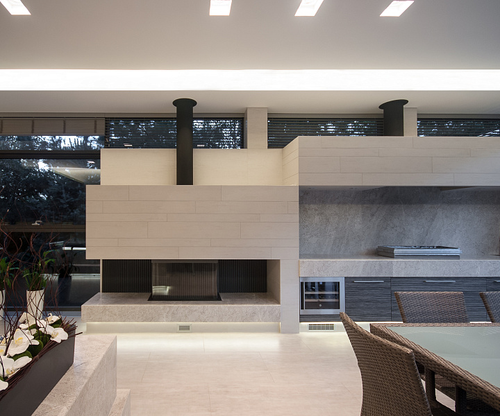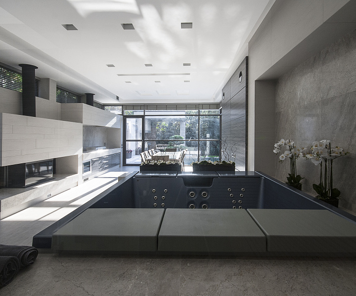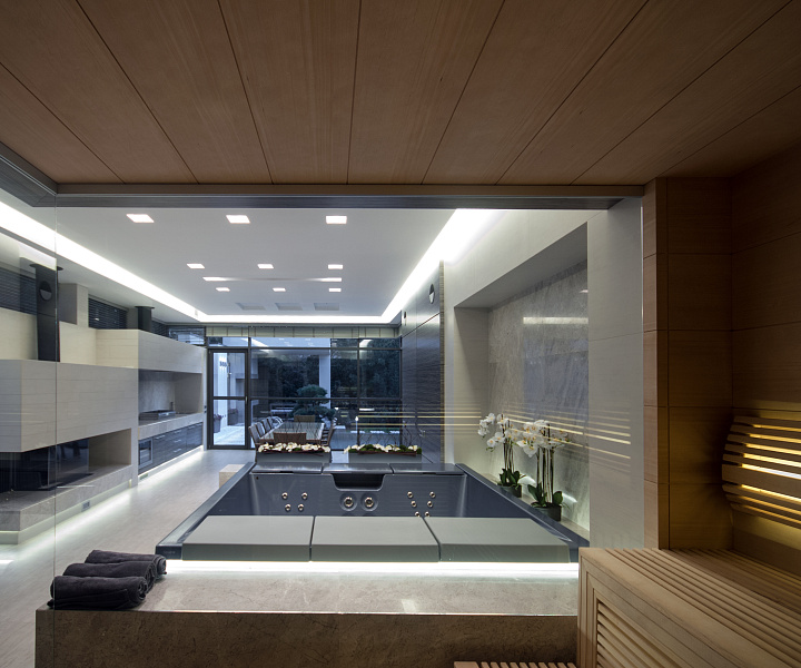 Стильный дом в современном стиле со вторым светом и открытым бассейном и спа-зоной внутри дома