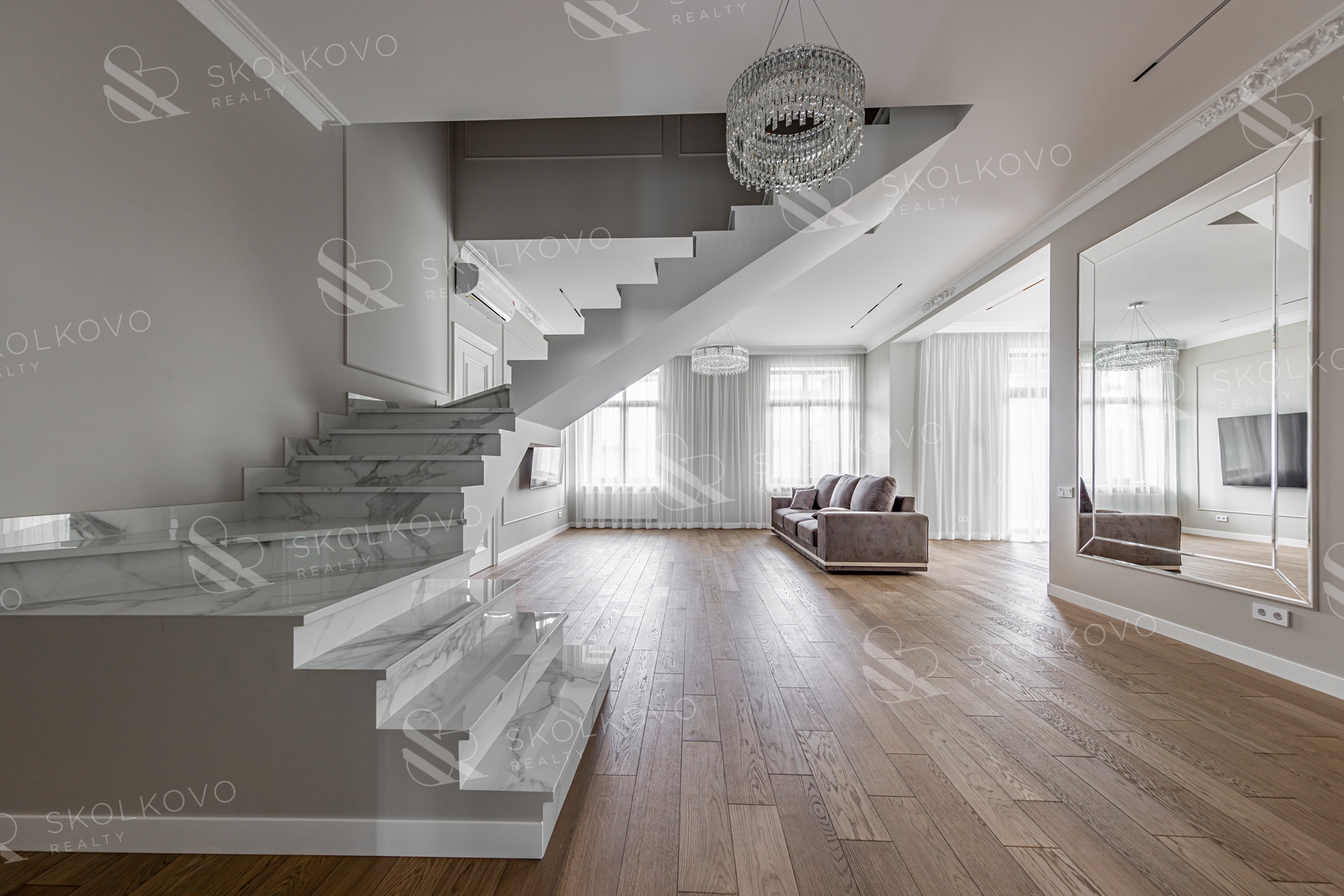 Просторный дом с продуманной планировкой и стильным дизайном. Высокие потолки и большие комнаты создают ощущение свободы и комфорта.