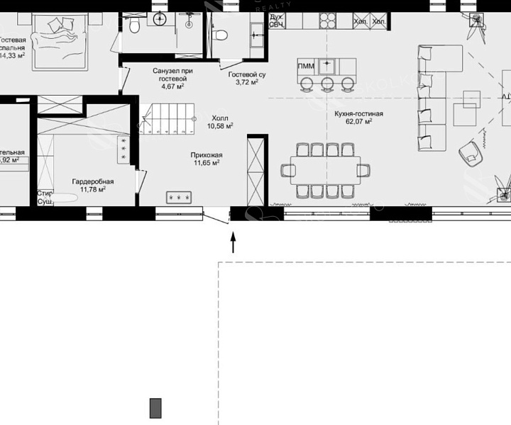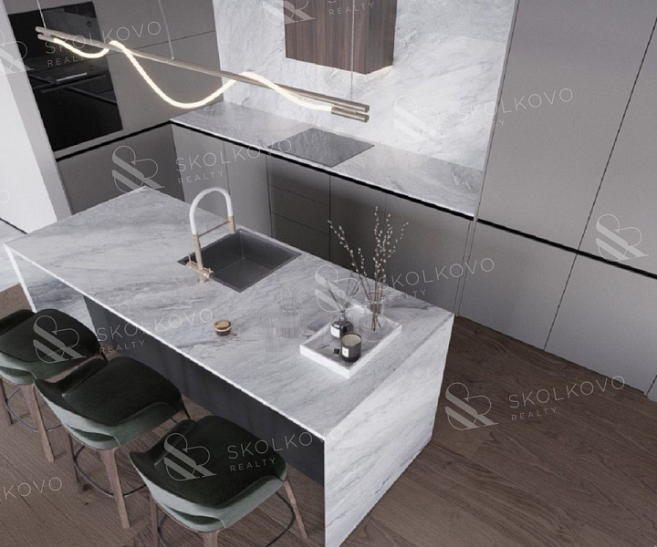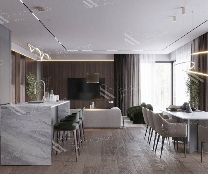 Просторную кухню-гостиную, где можно проводить время с семьей и друзьями.