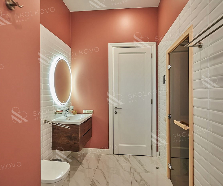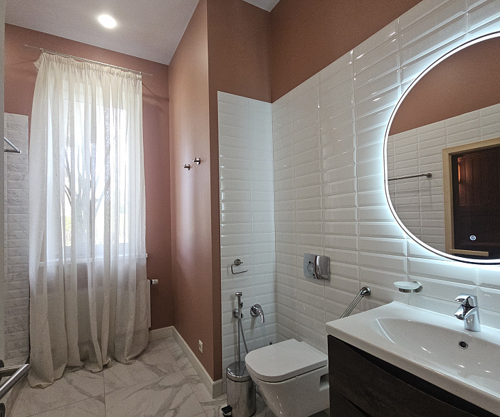 Гардеробная и санузел в мастер-спальне, обеспечивают максимальный комфорт и уединение.