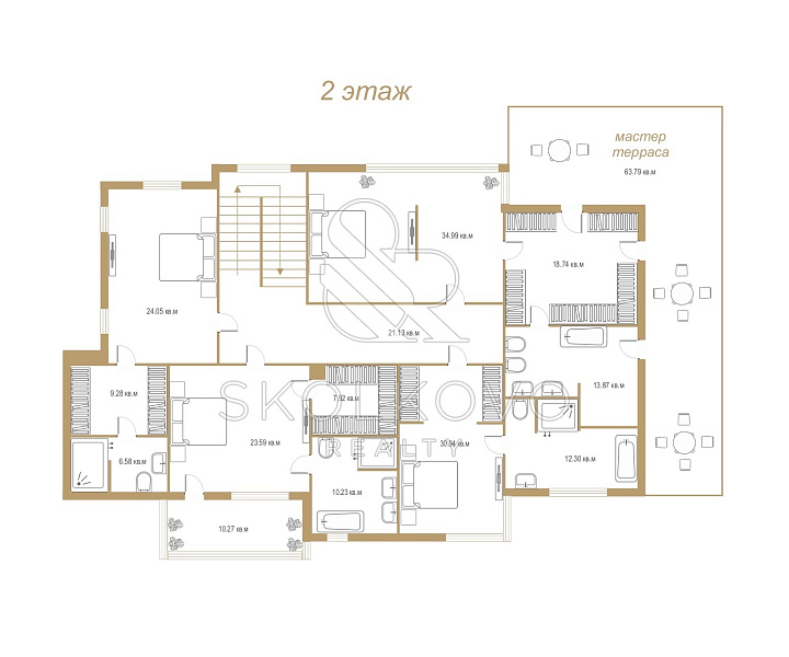 На втором этаже расположены: