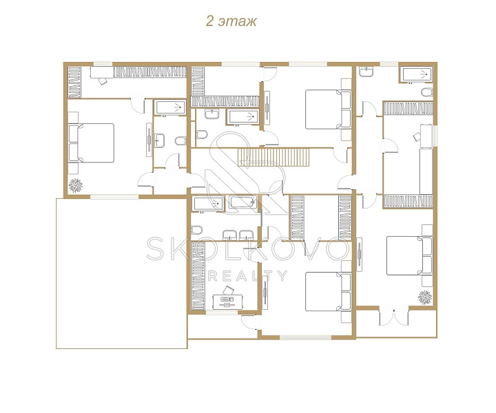 Четыре мастер-спальни, каждая с личной гардеробной и санузлом, что идеально подходит для большой семьи или гостей.
