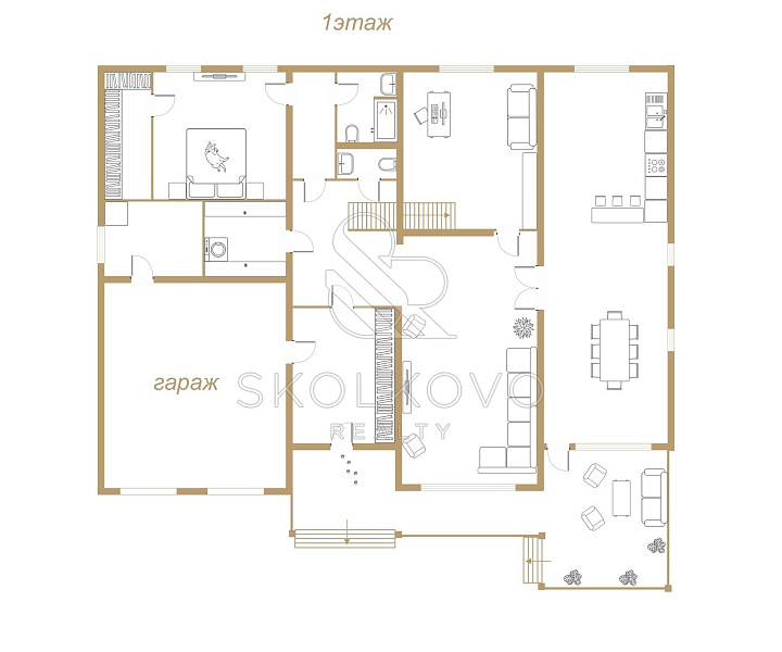 Одна спальня с отдельным санузлом и гардеробной, что делает её удобной для проживания персонала.
