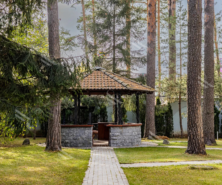 Участок ровный, с тщательно продуманным ландшафтным дизайном, включает беседку для барбекю и дом для охраны, что обеспечит вашему отдыху максимальный комфорт и безопасность.