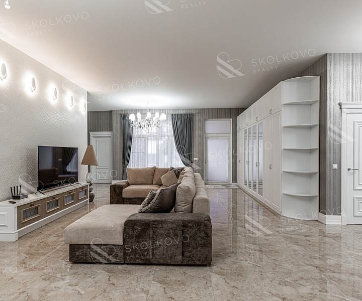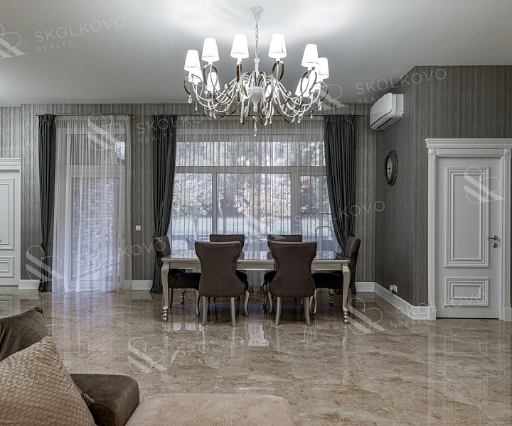 Интерьеры выполнены в стиле современной классики, и интерьер дома снабжен всем необходимым для комфортной жизни: