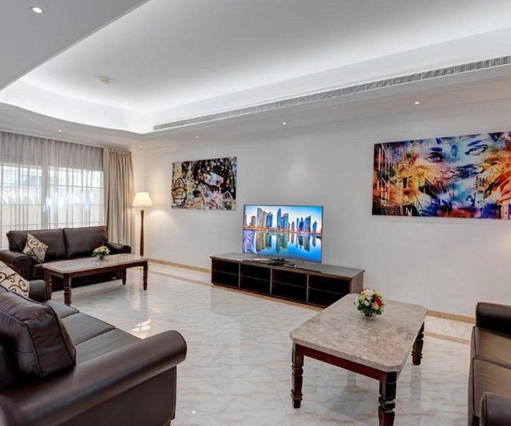 Отдельный блок для прислуги с 2 комнатами, ванной комнатой и большой прачечной.