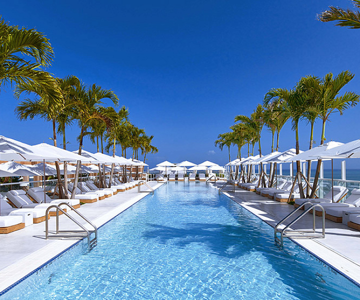 • 4 плавательных бассейна, в том числе бассейн на крыше и бар-ресторан с видами на Атлантический океан и Майами